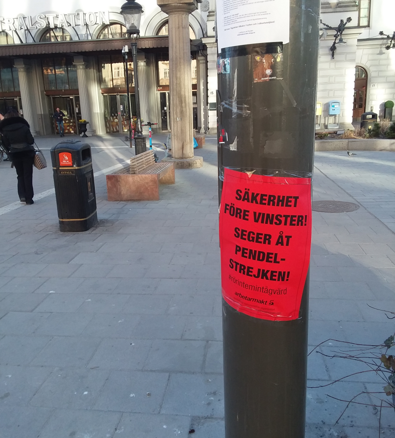 Affisch i Stockholm till stöd för pendelstrejken. Foto: Arbetarmakt