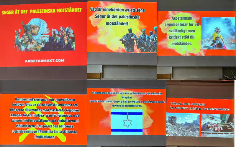 I måndags arrangerade Arbetarmakt ett öppet möte i Stockholm på temat Seger åt det palestinska motståndet. Drygt tio personer kom för att lyssna på två föredrag om 20 minuter vardera och för att delta i diskussionen efteråt.
