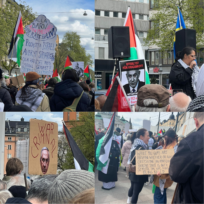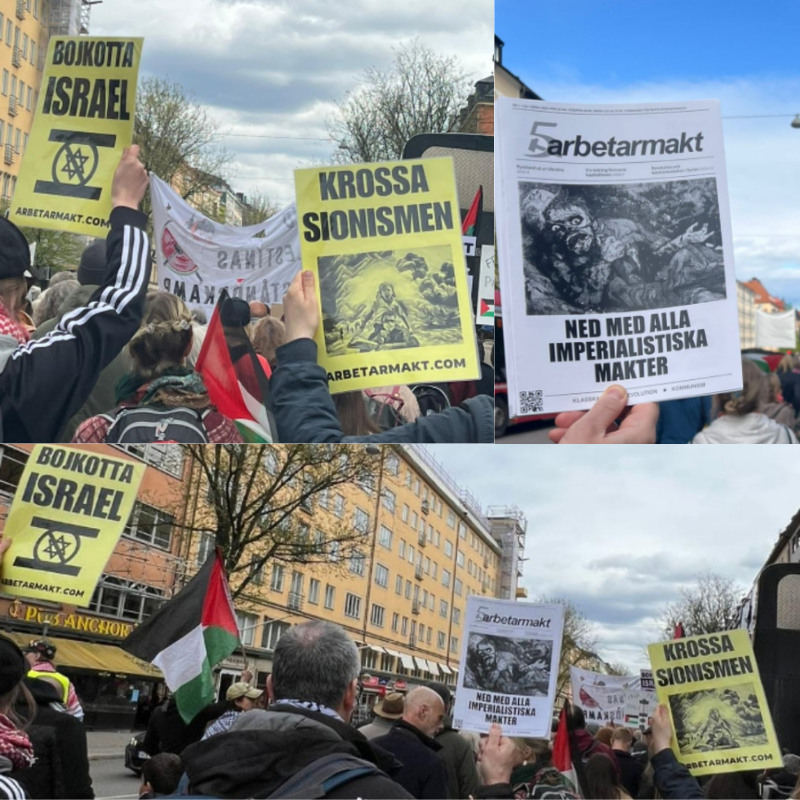 Lördagen 10 maj -25 marscherade vi genom centrala Stockholm för att visa vårt stöd till palestiniernas kamp. Uppskattningsvis deltog nästan 1000 personer. Vi från Arbetarmakt deltog och sålde bra av det senaste numret av vår tidning som har ett antiimperialistiskt tema. Vi delade också ut flygblad för vårt offentliga möte i Stockholm måndagen den 12 maj kl 19.00 på Solidaritetshuset. Rubriken för mötet är ”Seger åt det palestinska motståndet” och det är med den inriktningen vi deltar i Palestinarörelsen. Verklig Solidaritet är inte att tycka synd om palestinierna i största allmänhet, det är att ge fullt stöd åt dem när de slår tillbaka mot sionisterna och imperialisterna med de medel som finns till hands, inklusive väpnat motstånd.