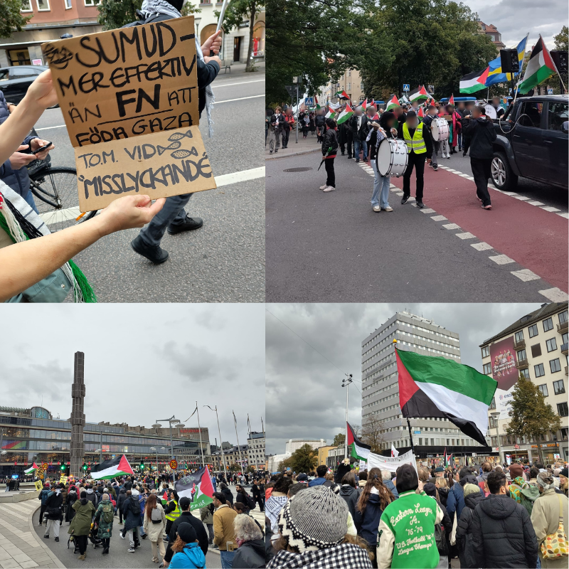 Kritiken och kampen mot Israel och deras utrotningskrig växer i hela världen. Globalt har Palestinasolidariteten ett momentum. Därför måste vi fortsätta att bygga och utveckla denna magnifika solidaritetsrörelse. I lördags (4/10) var vi flera tusen personer i Stockholm som trotsade regn och vind för att fördöma folkmordet och den skamliga högerregeringen i Sverige.