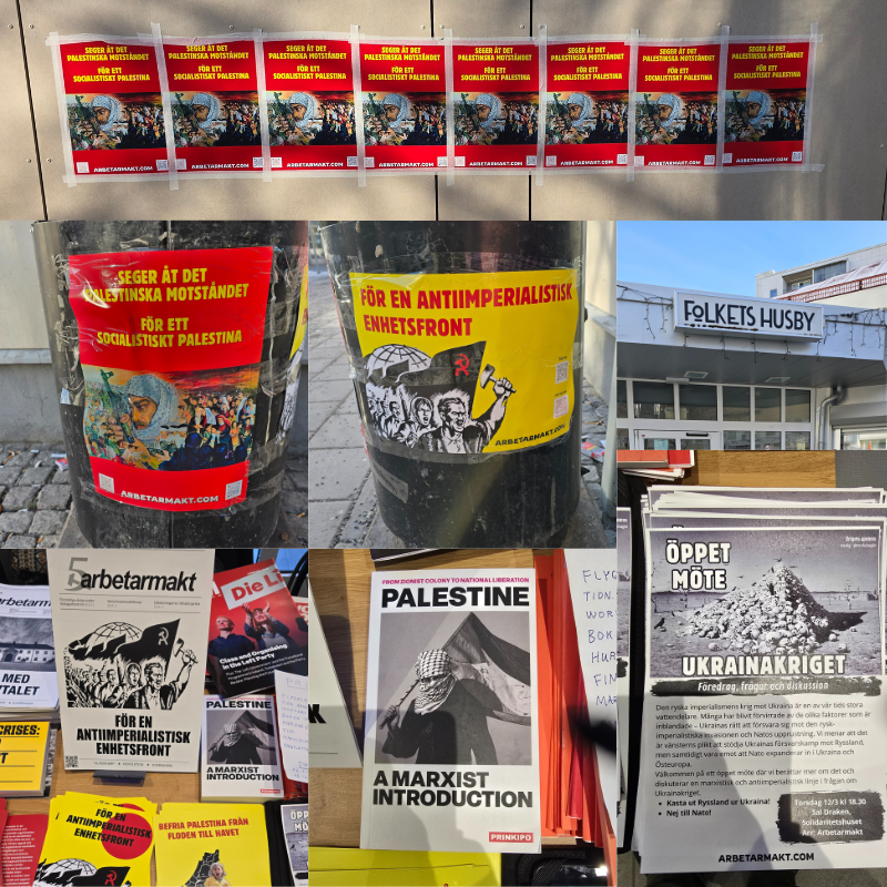 Som en av Septemberupprorets medlemsorganisationer deltog Arbetarmakt i organiseringen och med ett bokbord med material för att ge ett revolutionärt marxistiskt perspektiv på kampen, däribland ett flygblad om vårt offentliga möte om Ukraina den 12 mars – läs mer om det här. Under dagen passade Arbetarmakts aktivister också på att pryda Husby med våra antiimperialistiska affischer.