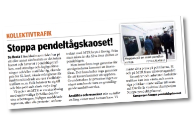 I veckan höll kampanjen Stoppa pendeltågskaoset vårt första intromöte för de som är intresserade av att bli aktiva i kampanjen. Fler sådana möten kommer, så håll utkik! Det var också en vecka som präglades av stora problem och förseningar i pendeltågstrafiken. Med …